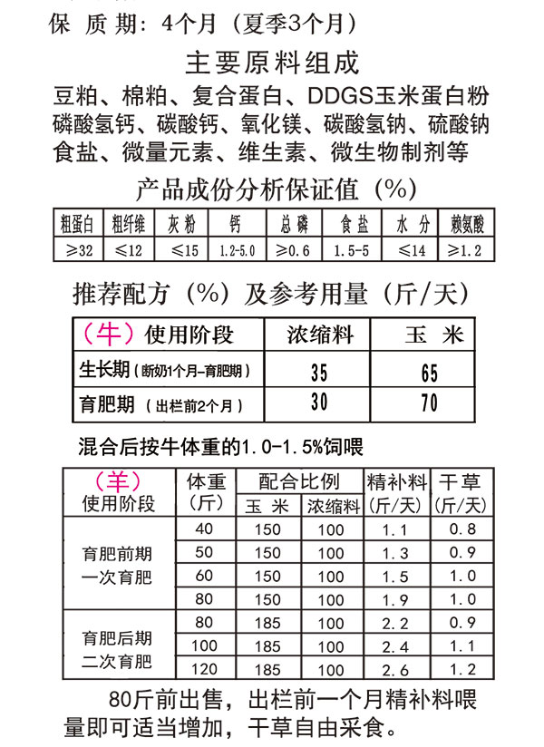 牛羊三保精補料